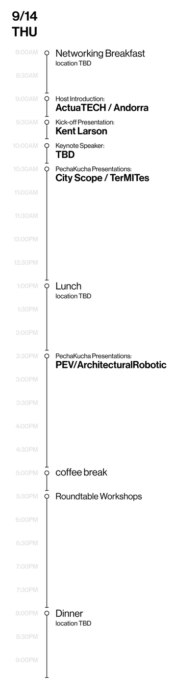 We believe that we can design a good city, and each city teaches us its unique lessons. The City Science Summit aims to share this collective knowledge from all around the world so we can plan our future cities better. The two-day conference in the Andorra Innovation Center will feature PechaKucha style presentations from our participants followed by round table discussions and presentations. Learn from our past collaborations and share your visions for the cities of tomorrow.