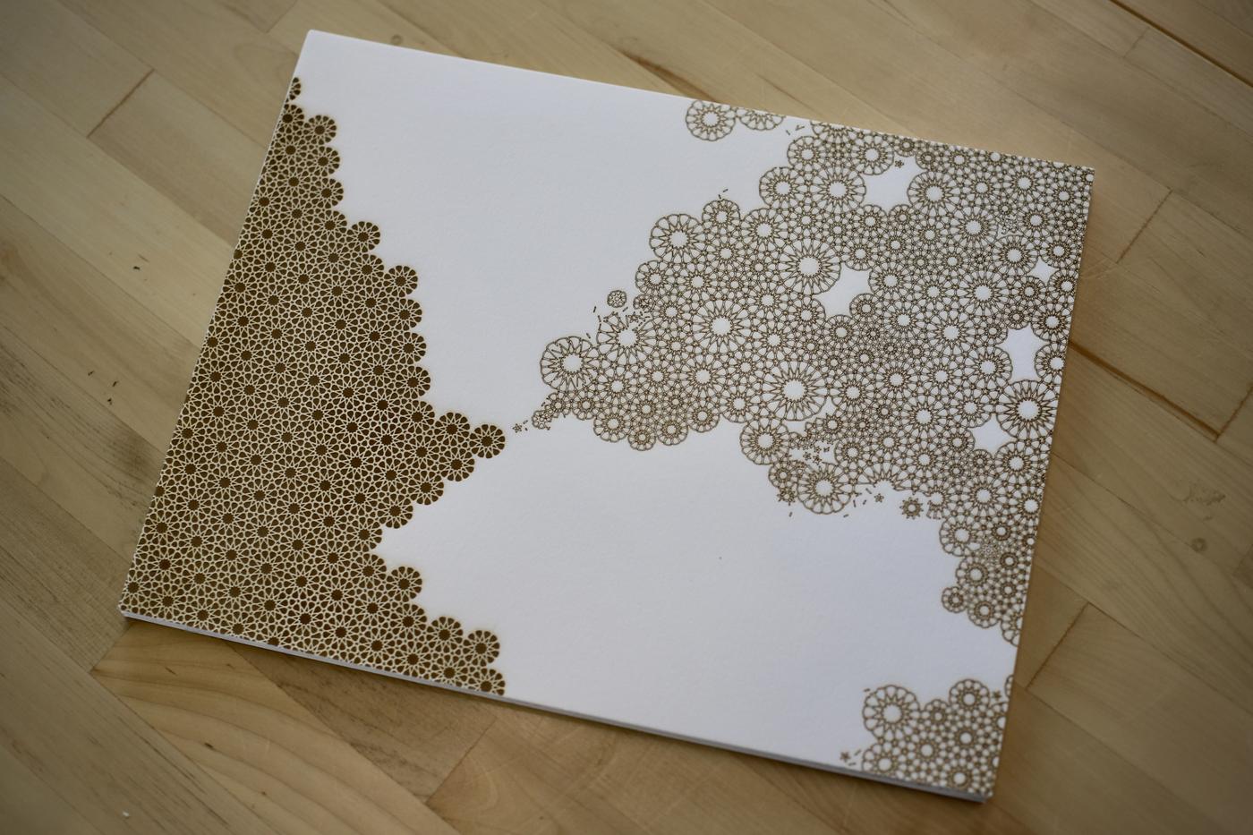 A collection of mixed-media works, including laser engravings, wood and fabric sculptures, and animated light pieces, explores how mathematical abstraction, computation, and contemporary craft intersect to illuminate the beauty of the source language and reveal a new design vocabulary.
